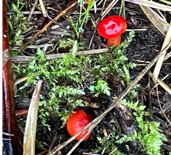 Als voorbeeldje uit Buggenhout neem ik het mooie en zeldzame gewoon vuurzwammetje (Hygrocybe miniata) . Het is een indicator van heischrale graslanden. Ook dit biotoop is terug te vinden in Buggenhout bos. Het vuurzwammetje is familie van de wasplaten en voelt wasachtig aan. Ze zijn klein, maar vallen op door hun felrode kleur van zowel het hoedje als de steel.
